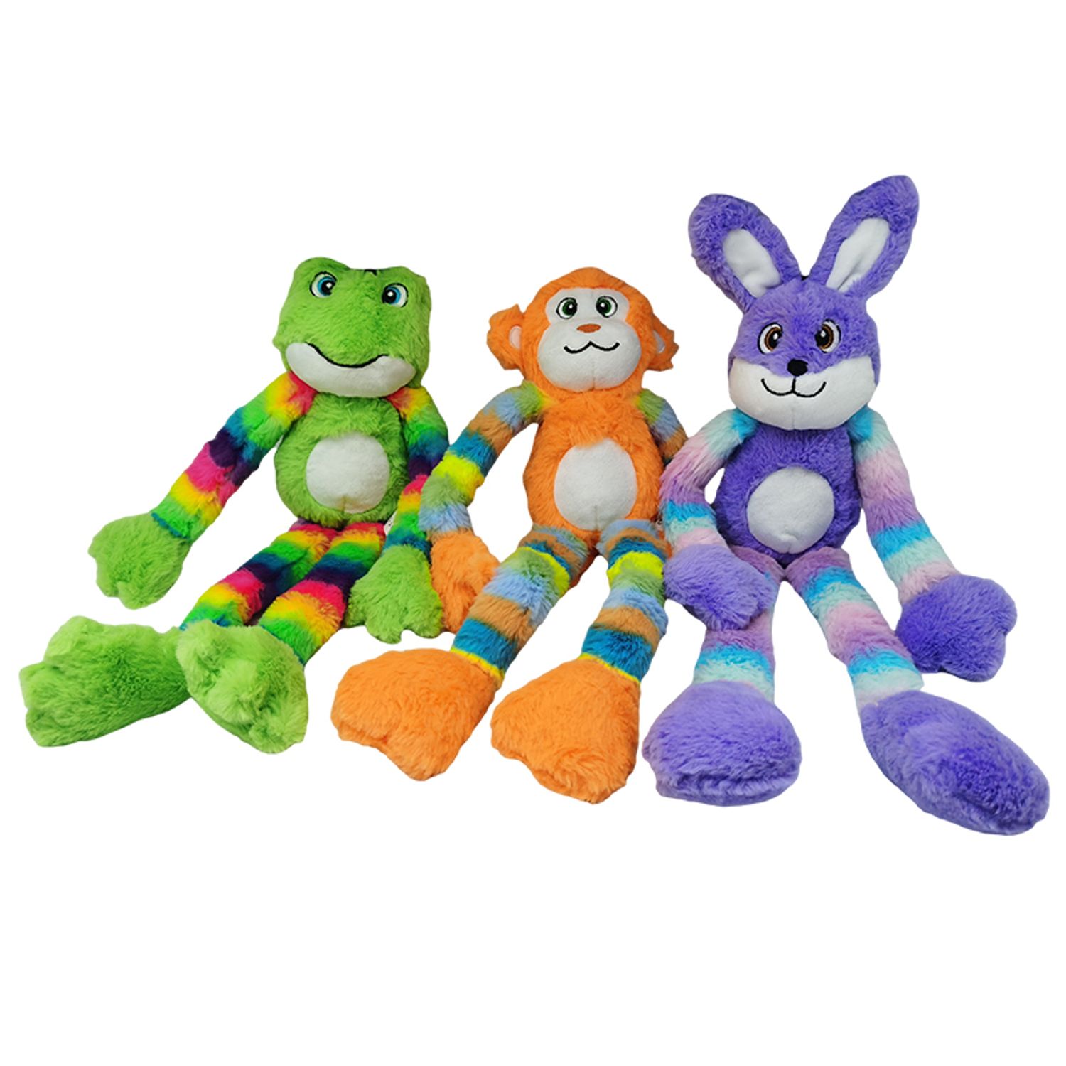 Adorable monkey plush dog toy with extra long arms and legs, perfect for hours of interactive play